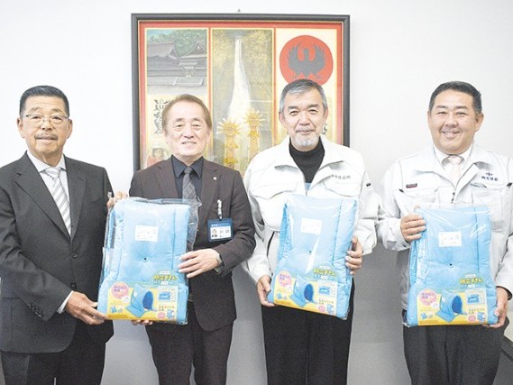 新宮市土建協同組合は3日、市内の小学校に入学する新1年生用の防災頭巾を寄贈した。組合の松根康隆理事長、阿万卓也副理事長、松原重充副理事長が市役所を訪れ、速水盛康教育長に手渡した。 ... 続きを読む