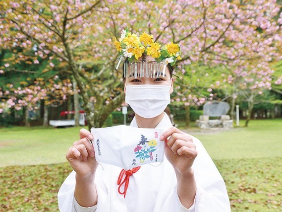 田辺市本宮町の熊野本宮大社で13日~15日に斎行(さいこう)される例大祭「本宮祭」に合わせこのほど、祭神に捧(ささ)げる「挑花(ちょうばな)」を九鬼家隆宮司が描いたマスクが、限定300枚制作された。10日から祭り最終日の15日ま... 続きを読む