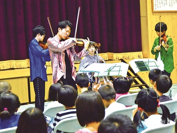 田辺市本宮町の市立三里小学校体育館で18日、小中学校音楽鑑賞会が開かれた。田辺市教育委員会が主催し、同校、本宮小学校、本宮中学校が共催。カルテット「LESS IS MORE(レスイズモア)」が来校し、3校の児童生徒約120人が、... 続きを読む
