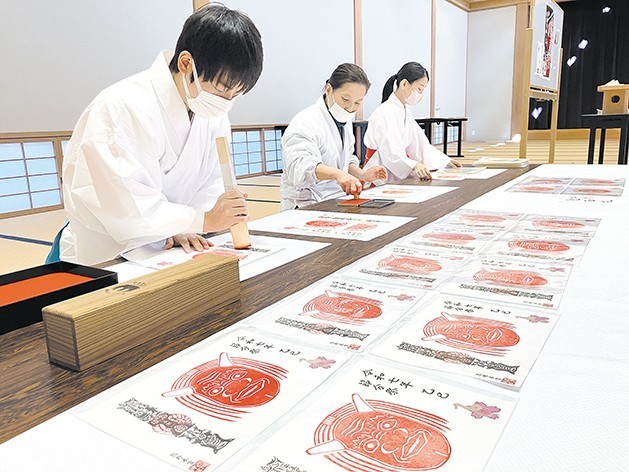 田辺市本宮町の熊野本宮大社で28日、節分に向けた鬼面札の制作が大詰めを迎えた。2月2日(日)の節分祭・追儺式当日までに300枚を奉製し、福豆と共に祈祷者らに授与する。今年から祈祷者への「厄祓玉(やくはらいだま)」の授与や、社頭で... 続きを読む