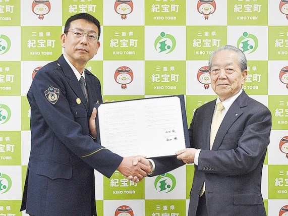紀宝町と紀宝署は24日、大規模災害発生時に警察庁舎が使用不能になった場合に、代替施設として「紀宝はぐくみの森」(同町神内)を使用できるようにする覚書を締結した。同町役場で調印式が行われ、西田健町長と谷口僚署長が覚書に署名した。... 続きを読む