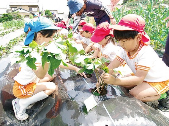 紀宝町立うどの幼稚園と同鵜殿保育所は8日、同町鵜殿にある大倉初見さんの畑で、サツマイモの苗植えを行った。5歳児の年長41人は青空の下、サツマイモ「紅(べに)はるか」の苗40本程度を植えた。 ... 続きを読む