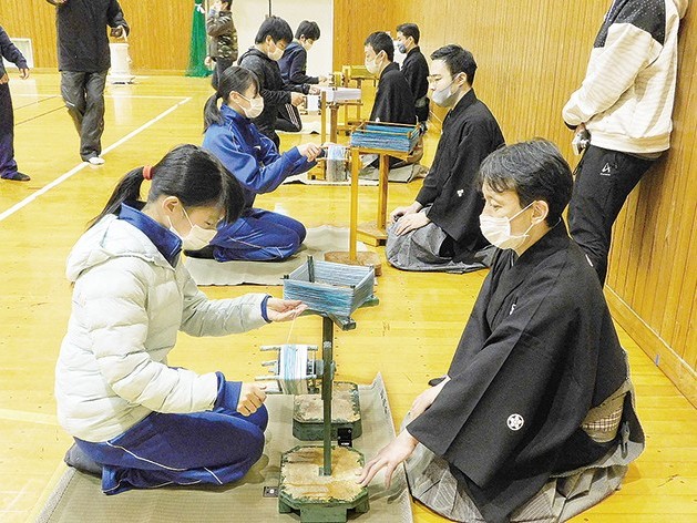 1月の公演前に体験 紀宝町立相野谷小学校の5、6年生(2