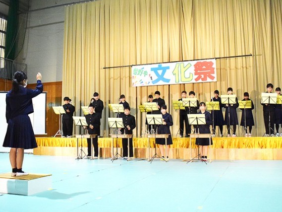 紀宝町立相野谷中学校は14日、「笑顔輝け」をテーマに文化祭を開催した。新型コロナウイルス感染症拡大防止のため、恒例のカレーのふるまいの中止や時間短縮で対応。学習についての発表を中心に、合唱・合奏を保護者らに披露した。... 続きを読む