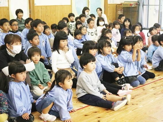 4月からの学校生活に向け 紀宝町飯盛保育所は2月26日、神内小学校の1年生を招き、同園で交