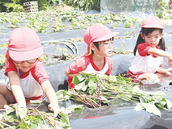 紀宝町立鵜殿保育所は25日、同町鵜殿にある大倉初美さんの畑でサツマイモ苗植えを行った。 園児たちは先生に引率され歩いて畑に到着すると、「おはようございます」と大倉さんに元気にあい... 続きを読む