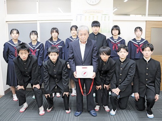 赤い羽根募金を託す 矢渕中ボランティア委員会