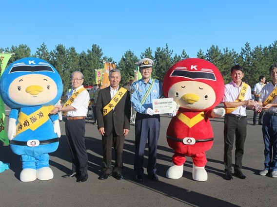 紀宝署は20日、紀宝町道の駅ウミガメ公園の津波避難タワー前で、秋の全国交通安全運動(21日~30日の10日間)の出発式を実施し、啓発活動をスタートした。 南牟婁郡交通安全対策協議... 続きを読む