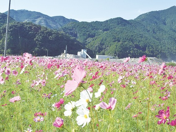 紀宝町鮒田、相野谷川沿いの休耕田でコスモスが見頃を迎えている。「鮒田農地環境活動会」(東口高士会長)が、地域での継続的な農地利用を促進するために三重県が実施する補助金の交付を受けて9月に種をまいたもので、今月中旬ごろから赤、ピン... 続きを読む