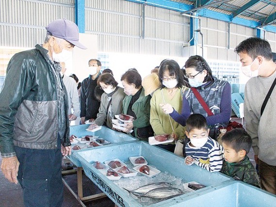 鮮魚や干物に人だかり 若者が意見出し合い考える