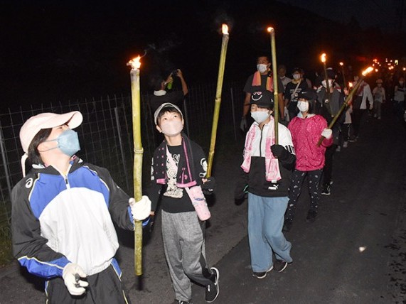 3年ぶり、虫送り行事 たいまつ手に子どもら行列