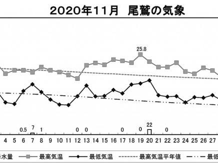 気象庁の観測によると、11月の尾鷲の降水量は、10月の多雨から一変、平年の2割強にとどまり、かなり少なかった。移動性高気圧に覆われた日が多かったためで、平均気温も平年に比べてかなり高かった。 ... 続きを読む