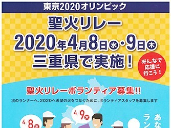 東京オリンピックの聖火リレーに関し、三重県聖火リレー事務局(近畿日本ツーリスト内)は4月8、9の両日行われる県内のリレー時のボランティアを募っている。紀北町は10人、熊野市は150人を募る。 ... 続きを読む