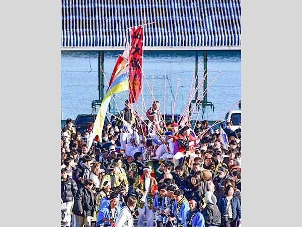 長い手踊り行列も 紀北町長島の長島神社の正月行事「船だんじり」が12日に行わ