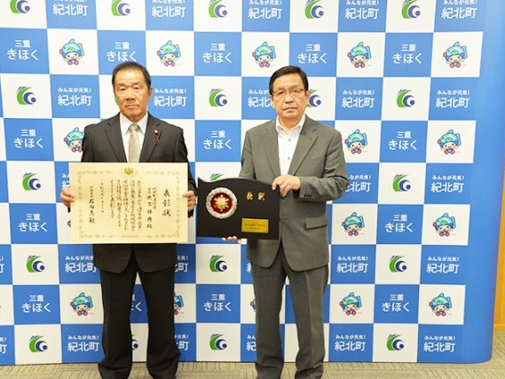 紀北町消防団の世古勝典団長(64)がこのほど、消防功労者として総務大臣表彰を受賞。同町役場で尾上壽一町長から表彰状と楯が伝達された。個人で同表彰を受けるのは紀北町になって初めて。本年度の受賞者は全国で8人だった。... 続きを読む