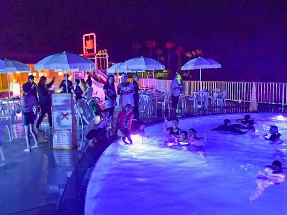 紀北町東長島城ノ浜の城ノ浜プールは今夏から夜間にライトアップされたプールで遊べる「ナイトプール」の運用を始めた。7月27日には地元企業の慰労会があり、カラフルなライトに照らされたプールで子どもははしゃぎ、大人もプール内やプールサ... 続きを読む