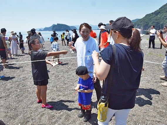 紀北町古里の古里海水浴場が7日に海開きを迎えた。安全祈願祭で今シーズンの安全と地域の繁栄を祈念した後、約250人が恒例の宝探しを楽しんだ。 安全祈願祭には、古里観光協会の大西孝政... 続きを読む