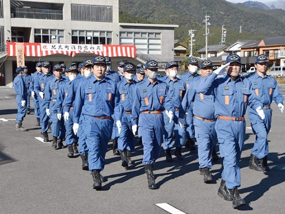 紀北町消防出初め式が4日、相賀の多目的広場で行われた。消防団員約120人が参加し、一糸乱れぬ分列行進や放水訓練などを披露。町民の生命と財産を守る使命への尽力を誓った。 式典では、... 続きを読む