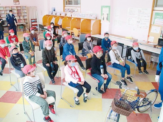 左右確かめ自転車で通行 阿田和小の交通安全教室