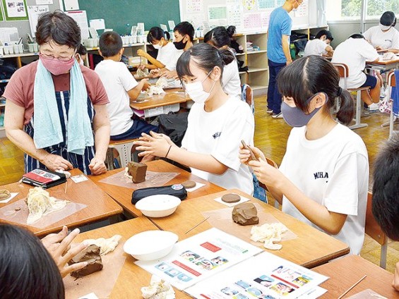 思い思いの作品作り 御浜町立御浜中学校は、地域の陶芸家2