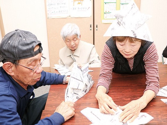 おしゃべりと笑いの交流 新聞紙で兜づくり