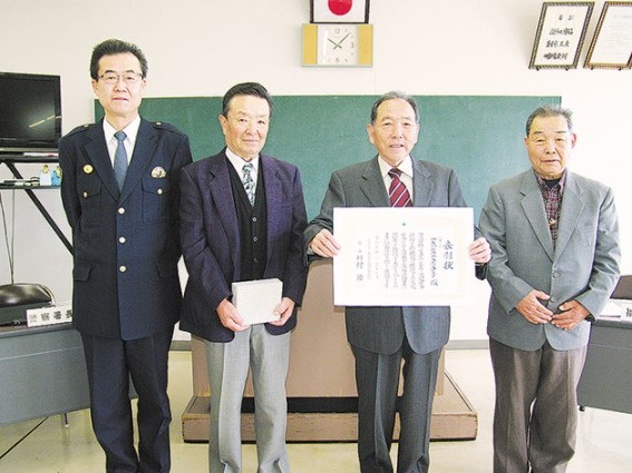 左から森阪署長、大屋副会長、杉本会長、福岡副会長(紀宝地区交安協)