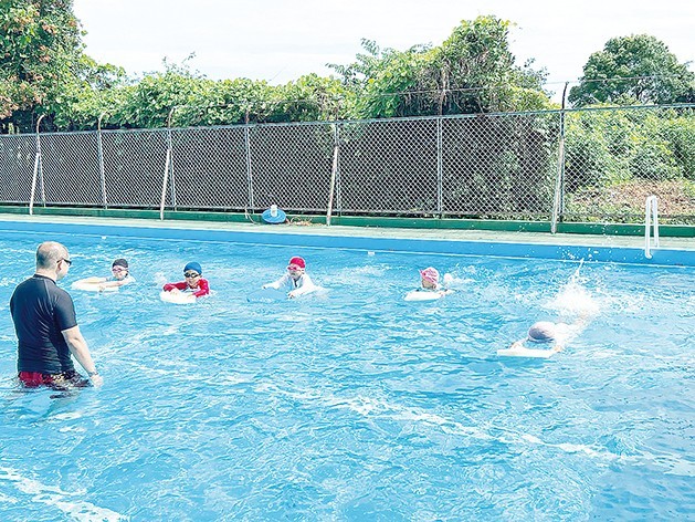 水中ゲームで水に慣れて 御浜町教育委員会は同町立御浜小学校で20日と21日の2日間、完全に