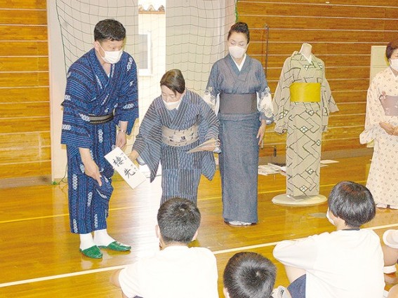 御浜町立阿田和中学校は15日、同校体育館で浴衣の着方体験学習を実施。2年生22人を対象に、NPO法人和装教育国民推進会議三重南勢支部の綾野勝敏代表らの指導のもと、日本の伝統衣装である和服に触れて学んでもらおうと企画した。授業の様... 続きを読む