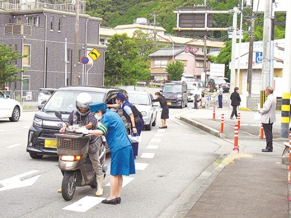 那智勝浦町では21日早朝から汐入橋の交差点付近で街頭啓発が行われ、関係者らは信号待ちで停止している車や駐車場に入ってきた車の運転手、歩行者や自転車運転者などに啓発物資を手渡し、交通安全への意識を高めるよう呼び掛けた。... 続きを読む