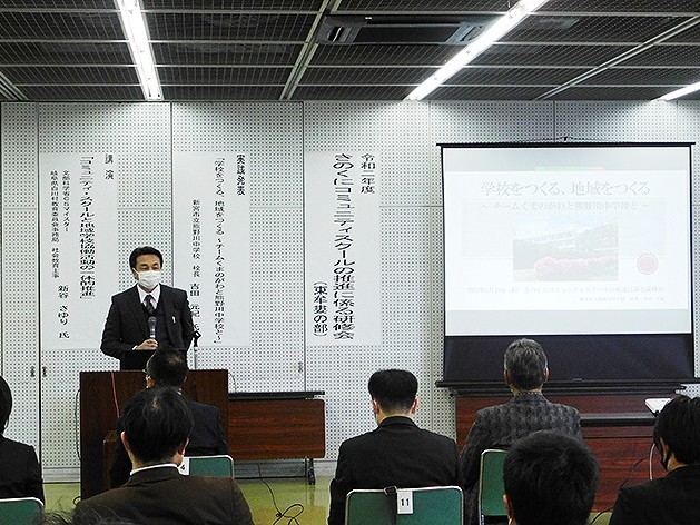 地域と連携した取り組みを紹介する吉田校長