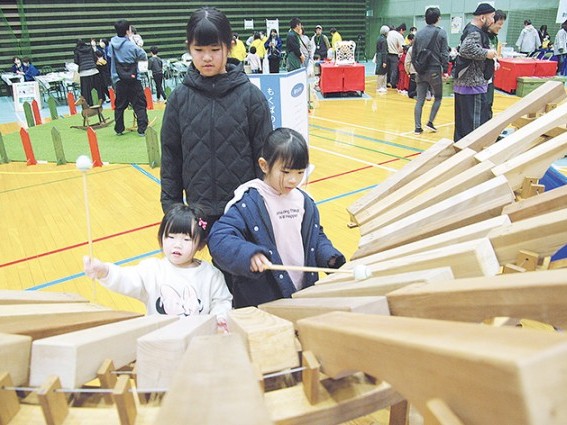 木のおもちゃやものづくりワークショップなど多くの親子連れ