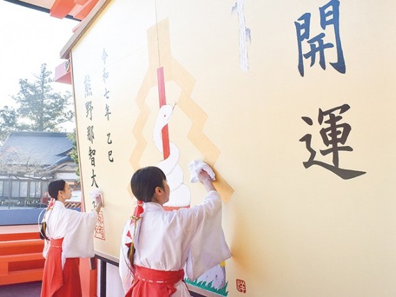 「辰」から「巳」へ 新年の干支大絵馬掛ける 熊野那智大社