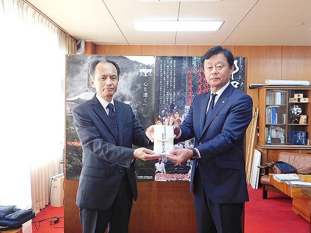 那智勝浦町那智山、熊野那智大社の男成洋三宮司は8日、町役場を訪れ、能登半島地震の被災地への義援金200万円を堀順一郎町長に託した。 義援金は、1月6日~5月6日の4か月間、同大社... 続きを読む