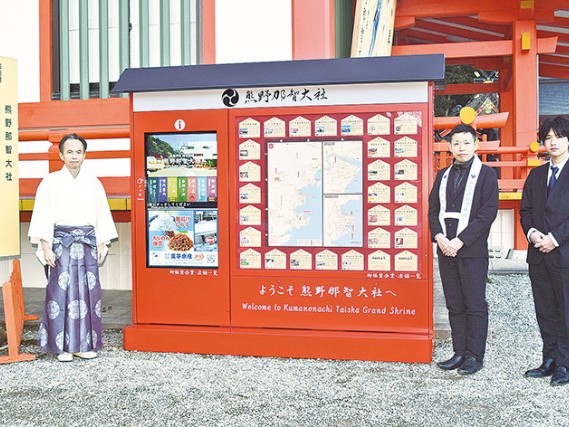那智勝浦町の熊野那智大社に1月26日、同大社の由来や周辺地域の飲食店・土産店、その他文化施設などの情報提供を行う電光掲示板(デジタルサイネージ)「神社ナビタ」が設置された。 神社... 続きを読む