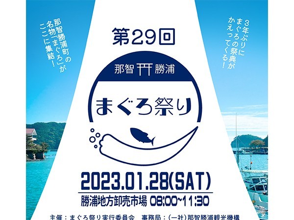 まぐろ祭り実行委員会は28日(土)午前8時30分~11時30分、那智勝浦町築地の勝浦地方卸売市場で「第29回まぐろ祭り」を開催する。入場無料だが感染症対策として入場は事前予約制とした。来場希望者は申し込みが必要。 ... 続きを読む
