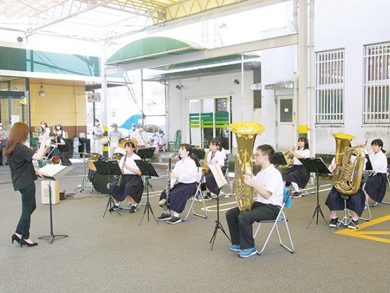 那智勝浦町立那智中学校の吹奏楽部(部員12人・吉野琴美顧問)が25日、同町天満のAコープなち店駐車場を会場に、ミニコンサートを行った。保護者や同級生はじめ地域から60人を超える観客が訪れる中、元気で明るい音色をまちに届けた。... 続きを読む