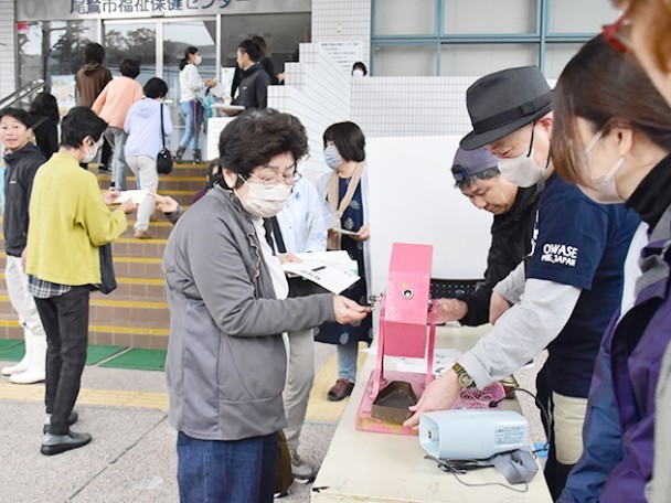 おわせよいとこスタンプ会の本年度2回目のガラガラ抽選会が8日、尾鷲市福祉保健センター玄関前で行われた。開始時間には5月の第1回よりやや少ない約70人が、満貼り台紙を手に列を作り、抽選に臨んだ。... 続きを読む