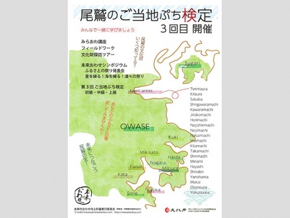 未来のおわせ向上計画実行委員会は2月12日(日)午前10時から、尾鷲市中村町の同市中央公民館で、第3回ご当地ぷち検定を行う。申し込みを受け付けている。 正誤式、選択式、記述式で1... 続きを読む