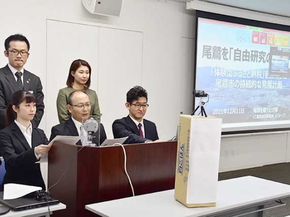 内閣府の「地方創生☆政策アイデアコンテスト2021」の最終審査会が11日、オンラインで行われ、紀北信用金庫の北村和敏さんが参加するグループの「尾鷲を『自由研究のまち』に!」のプランが2番目によい優秀賞に選ばれた。... 続きを読む