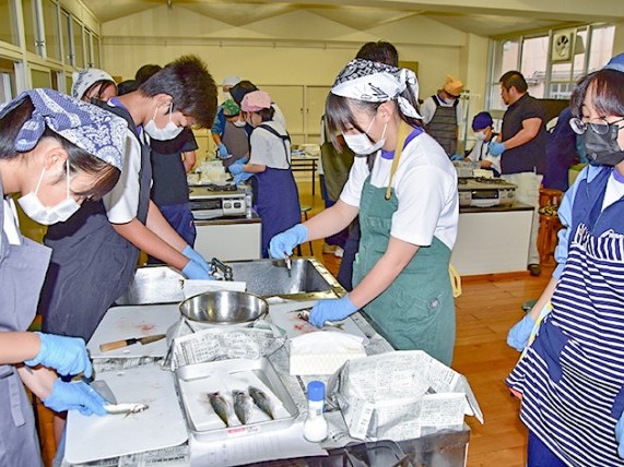 尾鷲市立尾鷲中の3年生94人が、アジをさばいて調理する体験に取り組んだ。11日から16日にクラスごとに行ったもので、市職員や尾鷲水産加工組合の人からさばき方を教わり、包丁を握って内臓を取ったり、3枚おろしに挑戦したりした。... 続きを読む