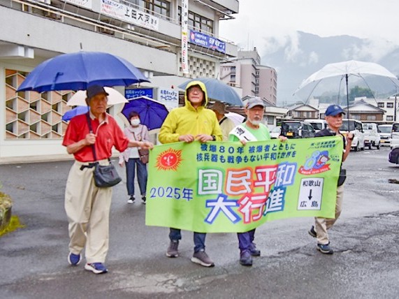核兵器と戦争のない社会を目指し全国を行進し広島、長崎を目指す「国民平和大行進」の三重県南部から北上するコースは8日に和歌山県から引き継いで紀宝町を出発。9日に尾鷲市、紀北町、大紀町を通過し、大紀町から南伊勢町まで、主に国道42号... 続きを読む