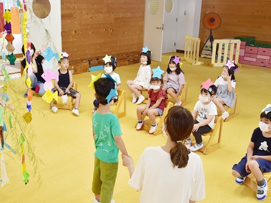 尾鷲市立尾鷲幼稚園は7日、七夕まつりを開いた。園児らは、七夕の由来をテーマにしたブラックシアターを楽しんだほか、短冊や輪飾りなどを付けた笹飾りの横に立ち、願い事を発表したりした。 園児9人は... 続きを読む