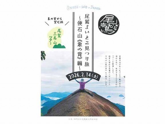 尾鷲観光物産協会は2月14日(土)、尾鷲よいとこ見つけ旅「登山ガイドと歩く『尾鷲3名山』便石山(象の背)編」を行う。雨天順延。 標高599メートルの便石山頂上から5分ほど奥に進んだところにある象の背は、文字通り象の背中... 続きを読む