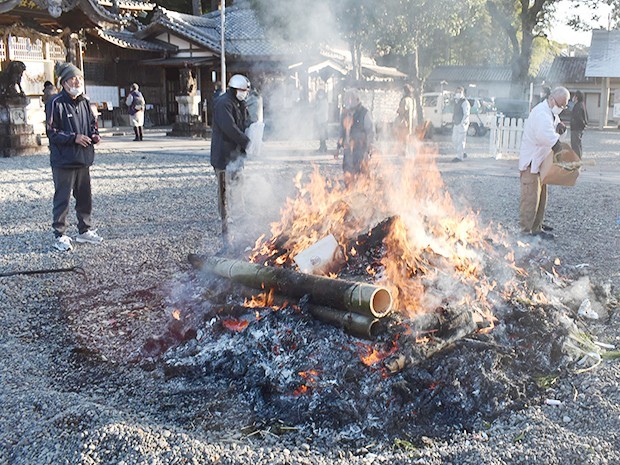 尾鷲市北浦町の尾鷲神社で15日、正月飾りなどを燃やす小正月の行事「どんど焼き」が行われ、参拝者が今年一年の無病息災などを祈った。 どんど焼きは全国各地に伝わる伝統行事で、燃える火にあたったり... 続きを読む