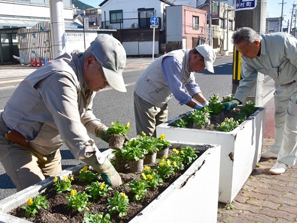 尾鷲グリーンクラブと市環境課は10月31日、紀望通りと銀杏通りのフラワーボックスと、北川橋そばのプランターの花の植え替えを行った。黄色や薄い紫色などさまざまな色の花をつけたビオラを合わせて969株植えた。... 続きを読む