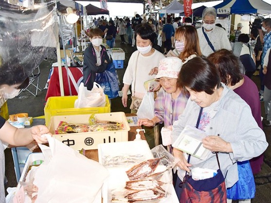 海産物を中心に扱う尾鷲の恒例朝市「イタダキ市」が4日、尾鷲魚市場で開かれた。5か月ぶりの実施で、雨が降る中、市民ら多数が訪れて買い物を楽しんだ。 新型コロナウイルス感染症拡大の影... 続きを読む