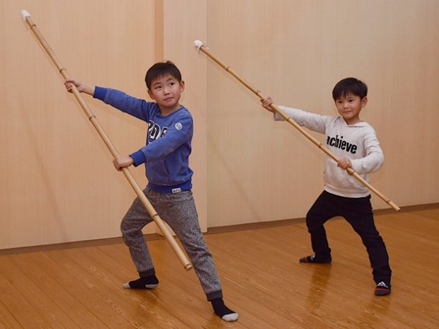 ヤーヤ祭りの最終日の大名行列の花形「長刀振」を担う上野竜輝君(尾鷲小1年)と岩本楓也君(尾鷲小3年)が本番に向けて練習に励んでいる。 羽二重衣装に三段重ねのわらじ、歌舞伎風の化粧... 続きを読む