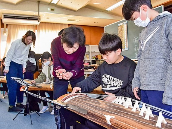 尾鷲市立尾鷲小学校の4年生が23日、音楽の時間で琴の練習を行った。賀田小で音楽を指導している中村和代さんが基本的な弾き方を指導。子どもたちは「かえるの合唱」の演奏に取り組んだ。 ... 続きを読む