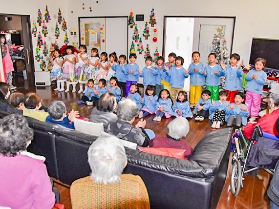 尾鷲市の矢浜保育園の3~5歳児26人が12日、園の近くにあるデイサービス「ライト」を訪ね、利用の高齢者にダンスや歌を披露した。 クリスマス前恒例の訪問で、 3歳男女、4歳、5歳男女が、保育士... 続きを読む