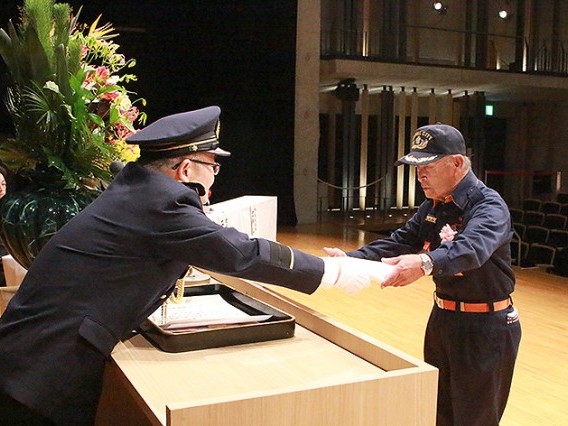 安心・安全のまちづくりへ 新宮市消防出初め式が7日、同市下本町の丹鶴ホールで